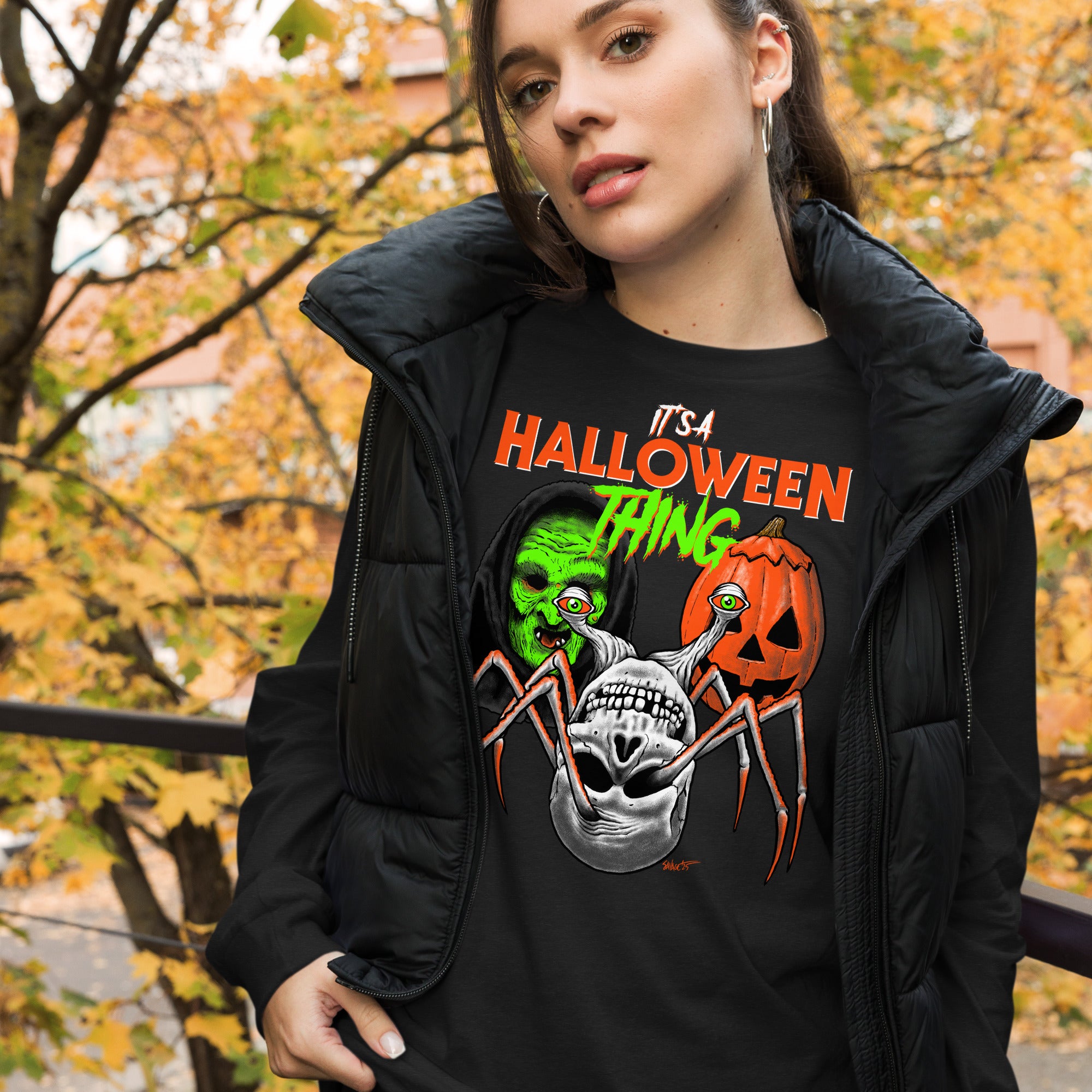 A mashup of two of my favorite movies, originally conceived for a horror convention's t-shirt that included the cast of Halloween III: Season of the Witch and The Thing.